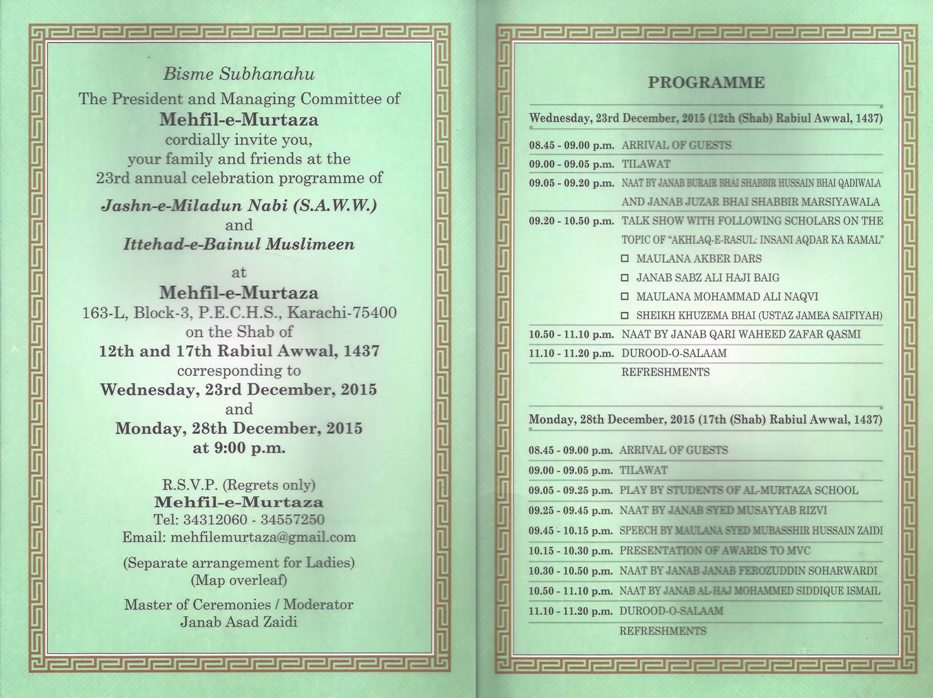12th and 17th (Shab) Rabiul Awal 1437 AH