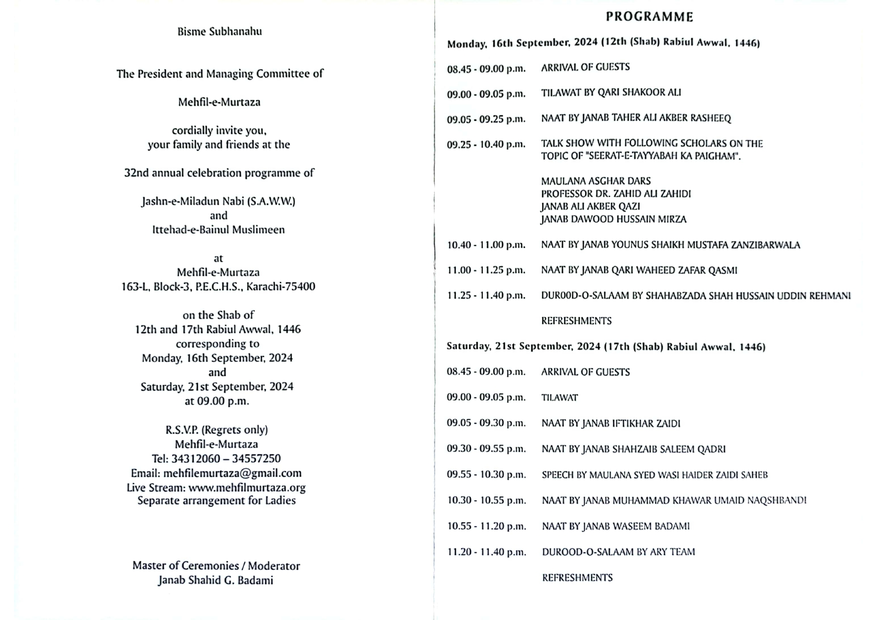 You can view the Live Stream via our website as well at http://www.mehfilmurtaza.org
