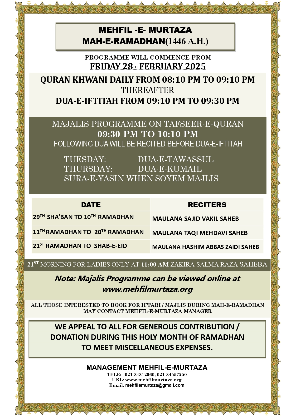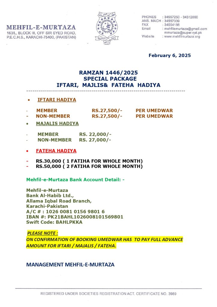 ( You can view online at Mehfil-e-Murtaza Webcast )