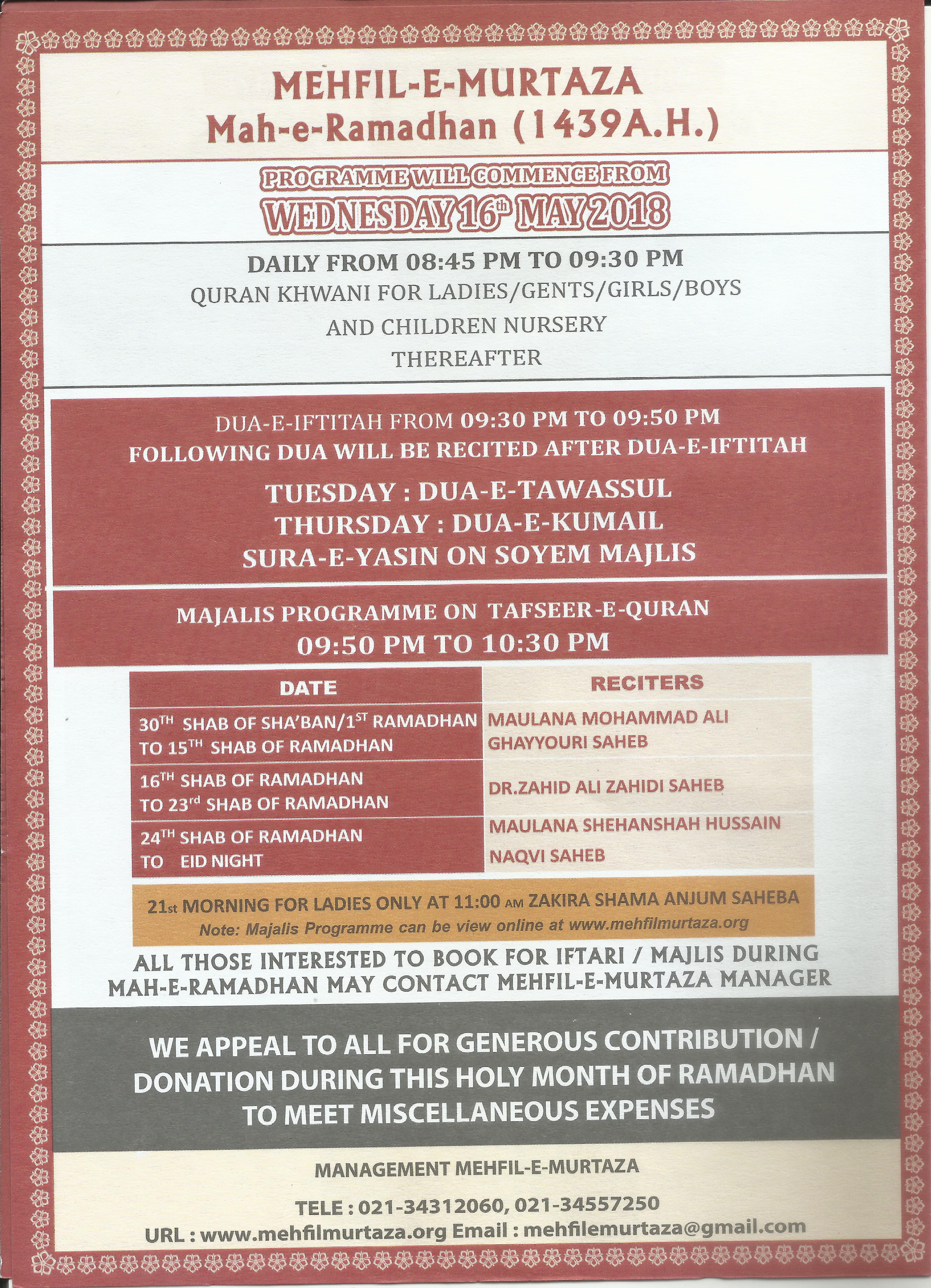 ( You can view online at Mehfil-e-Murtaza Webcast )